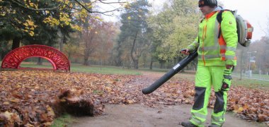 Um die Laubmassen im Stadtgebiet bewältigen zu können, kommen überwiegend Laubsauger und Laubgebläse zum Einsatz. Auf kleineren Flächen mit weniger Laubmassen wird mit akkubetriebenen Geräten gearbeitet oder möglichst auf den Einsatz von Maschinen verzichtet.