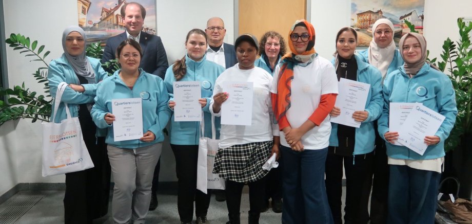 Er dankte auch den Wohnungsbaugesellschaften für ihre finanzielle Unterstützung zur Umsetzung des Projekts, dem Team des Mehrgenerationenhauses für die Realisierung sowie den Lotsinnen für ihre Bereitschaft, sich zum Wohle des Quartiers einzusetzen. Im Rahmen der Feierstunde überreichte er den Quartierslotsinnen Petra Hartel, Bahareh Alipour und Latifa Bannour, den Elternlotsinnen Anum Rizwan und Catarina Binane-Lipanga, sowie den Quartiers- und Elternlotsinnen Manar Boujataoui, Hajer Bouklata, Alona Dulneva und Şeyma Bahtiyaroğlu ihre Zertifikate sowie ein Präsent.
