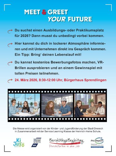 Neben klassischen Ausbildungsplätzen warten auf die Besucherinnen und Besucher auch duale Studienplätze sowie Praktikumsmöglichkeiten. Damit richtet sich die Berufsmesse sowohl an Schülerinnen und Schüler, die kurz vor dem Schulabschluss stehen, als auch an junge Menschen, die sich beruflich orientieren oder neu ausrichten möchten. Eine Übersicht über alle 15 Anbieter auf der Messe ist unter https://kijufoe-dreieich.de/mgyf zu finden.