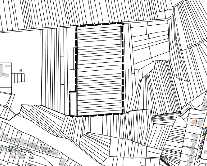 Der räumliche Geltungsbereich des Bebauungsplanes ist auch aus der unten abgebildeten Karte zu ersehen. Bei Abweichungen oder Unvollständigkeiten des Grundstücksverzeichnisses hat die Planzeichnung Vorrang.