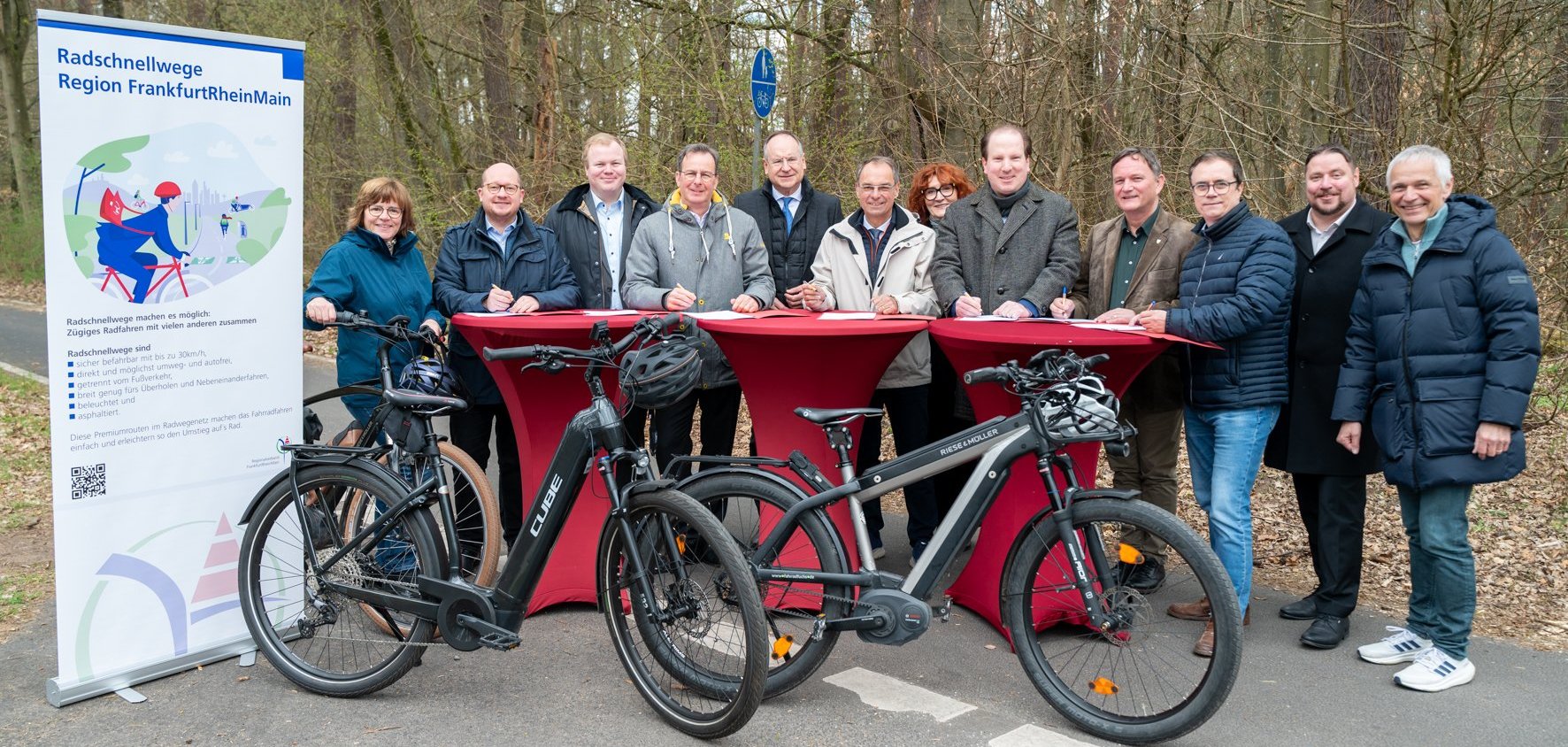 März 2025 | Kooperationsvereinbarung | Unterzeichnung der Kooperationsvereinbarung für Planung und Bau der Radschnellverbindung Seligenstadt- Frankfurt Flughafen (FRM9) von allen beteiligten Kommunen, dem Kreis Offenbach und dem Regionalverband. |